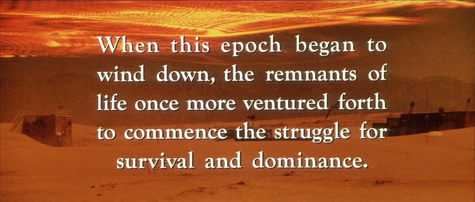 "I will say that when we completed the film, I thought we had a very good film. Jack Smight directed it. At that point, I think, it cost about $6,500,000. They went to $8,000,000 with technically changing the colour of the skies and editing. They totally re-edited the film--the executives at 20th Century Fox!"And the film as you will see it[...]is no longer the film that Jack created. Unfortunate, because he did a wonderful job."It was the story of some people who go across America from the New Mexico area to Albany, New York, with one of those futurist things called a Landmaster. It's a trek story, as we call it. The only humanity is what happens between the people: the relationships, the sexuality, the attempted murders, and so forth."None of which you will see now. That's out!"It's a trek story about this Landmaster now. With purple skies."*